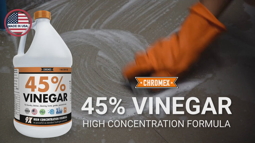 Unlock the power of Chromex 45% Vinegar Concentrate, made with pure ingredients for reliable quality. This high-strength white vinegar is 9x stronger than household vinegar, making it ideal for cleaning, laundry, gardening, and removing tough stains.